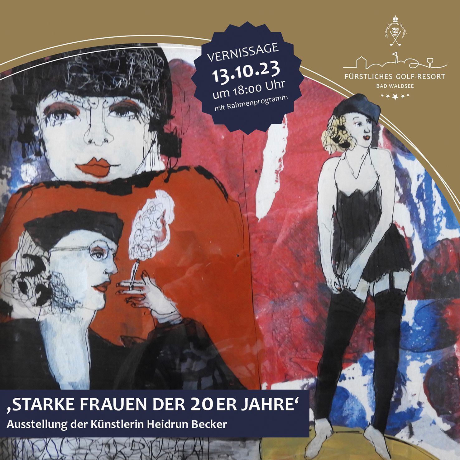 'Starke Frauen der 20er Jahre' Wir freuen uns ganz besonders, Ihnen mit der Ausstellung ab dem 14. Oktober 2023 wieder ein kleines Highlight präsentieren zu dürfen: 'Starke Frauen der 20er Jahre' – die Künstlerin Heidrun Becker lädt Sie ein, in ihre Bildsprache einzutauchen. Sie wagt in ihren Kunstwerken Vielseitigkeit und radikale Veränderungen.